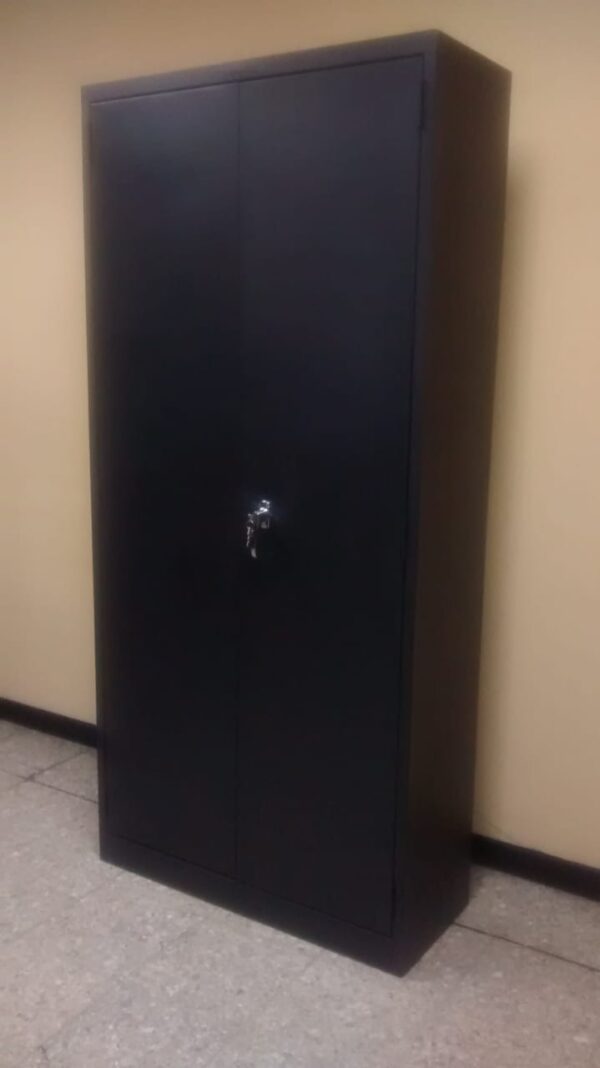 Armario de 5 entrepaños movibles; de puertas abatibles y chapa de manecilla. Metal sometidos a tratamiento especial de limpieza y desengrase, más un «Proceso de Fosfatización» para una perfecta adhesión de la pintura electrostática (fluido de polvo seco) curada o secada al horno; con lo que se obtienen excelentes resultados tanto en términos de acabado como en sellado hermético anticorrosivo.